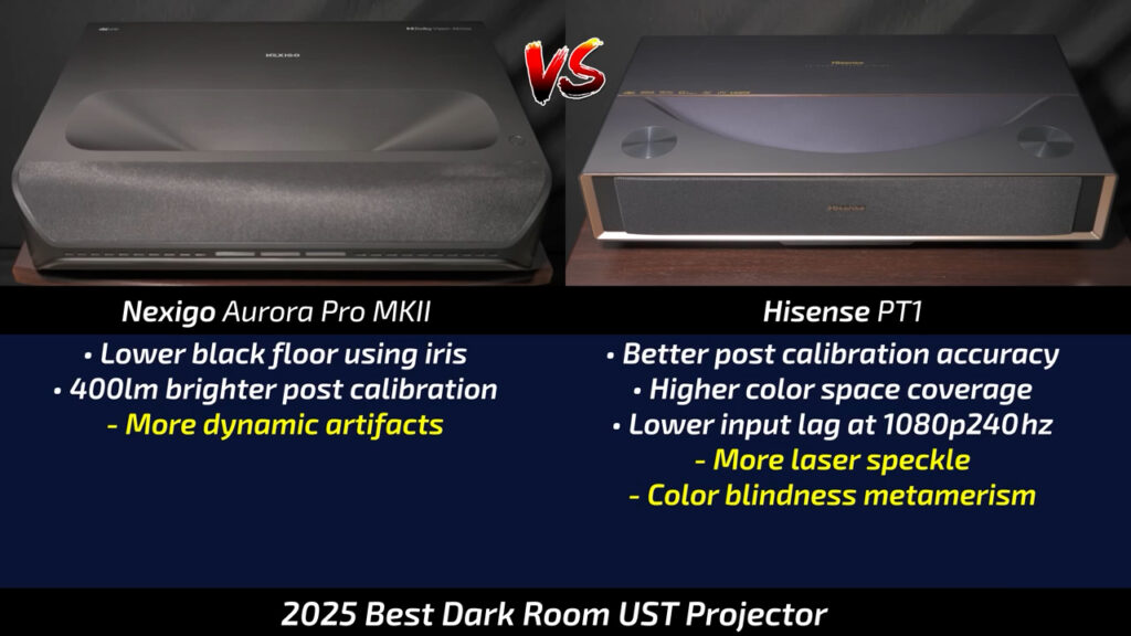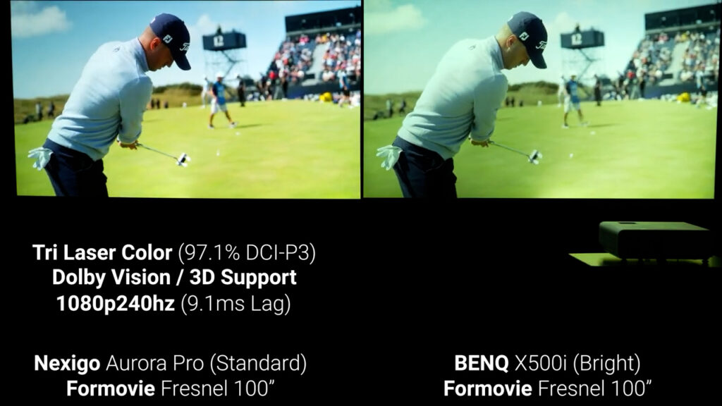 If you’re looking for better ambient light performance and your budget is a bit higher, like $3500, I still think the Nexigo Aurora Pro with a Fresnel screen is a nearly unbeatable combo, and I’m continually amazed at how it performs as a jack of all trades, master of many. Tri-Laser Color Performance, Dolby Vision, 3D, and fully functioning 1080p 240Hz at 9.1ms of input lag is just crazy.