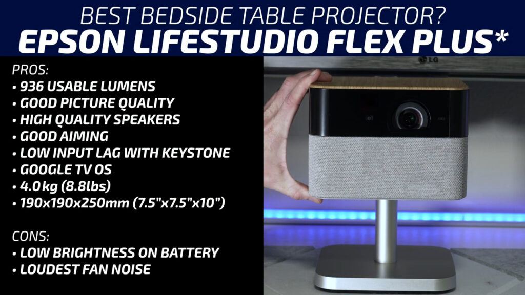 The Epson LifeStudio Flex Plus seems the best fit for that use case. It had good brightness, decent picture quality, good speakers, an easy to use aiming system, and impressively low input lag when using keystone. But the thing that qualified it to be in this video, which is its ability to be powered by a USB-C power bank was extremely disappointing since it loses over half of its brightness when powered by USB-C. Ultimately the LifeStudio Flex Plus is less of a portable projector and more of a mini projector like the JMGO N1S 4K and Hisense M2 Pro, so I’m also going to include it in my next video with those other sub $1500 projectors to see if it can compete.