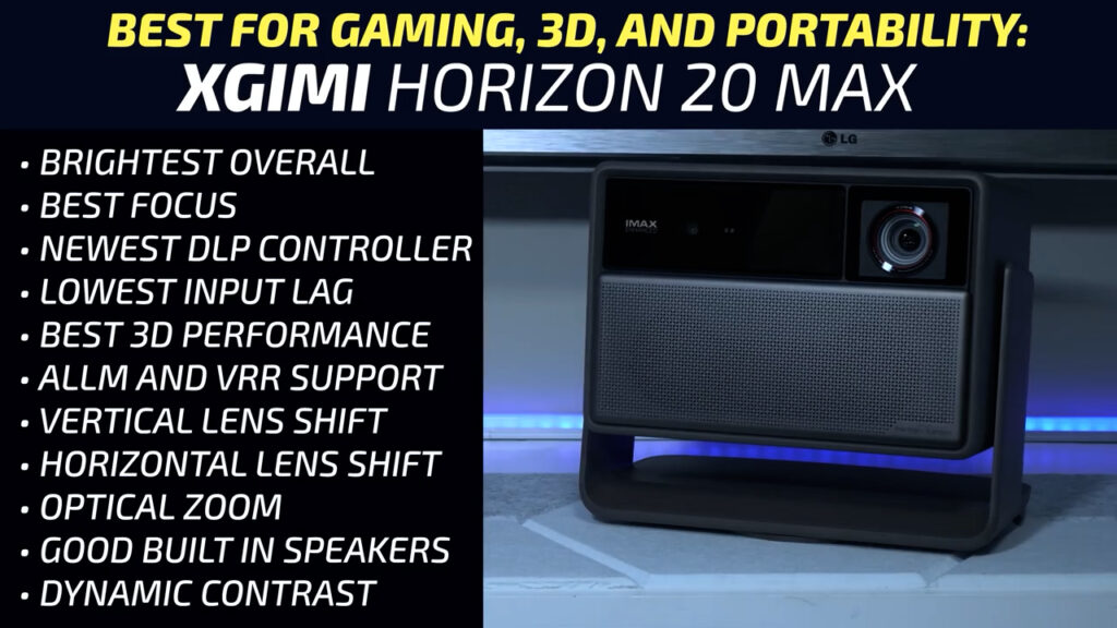 If your setup is a bit more casual and you plan on putting your projector on a table or shelf, if you are mostly using your projector for video games with fast camera movements, or if 3D performance is at the top of your wish list, then the XGIMI Horizon 20 Max is also incredibly good. Even though it couldn’t touch its 5700 lumens claim in any usable mode, it still had over 3000 ANSI lumens with acceptable color accuracy. If they can figure out how to fix their dynamic black level enhancement setting, the Horizon 20 is going to be a serious competitor for the Valerion Pro 2 in a theater environment as well.