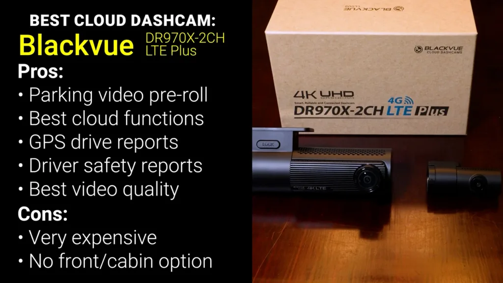 If you want the ultimate connected dash cam, the BlackVue DR970X-2CH Plus LTE was the clear winner with great parking notifications with useful 10 second pre-roll, automatic cloud upload of events, real time GPS mapping and event mapping, and even a daily driver safety report. All that comes at a hefty price though, with an almost $600 upfront cost, plus $7.99 a month for the BlackVue cloud and $23.99 a month for cellular service. Though, I will say, the BlackVue is compatible with the T-mobile network, which is only $15 a month for 3GB, so you can save yourself $9 a month by just swapping out the sim card. Still, in my opinion the BlackVue should be the clear choice for businesses with employees driving company vehicles and the BlackVue cloud even has a separate fleet plan that enables more features like geofencing and longer GPS tracking records.