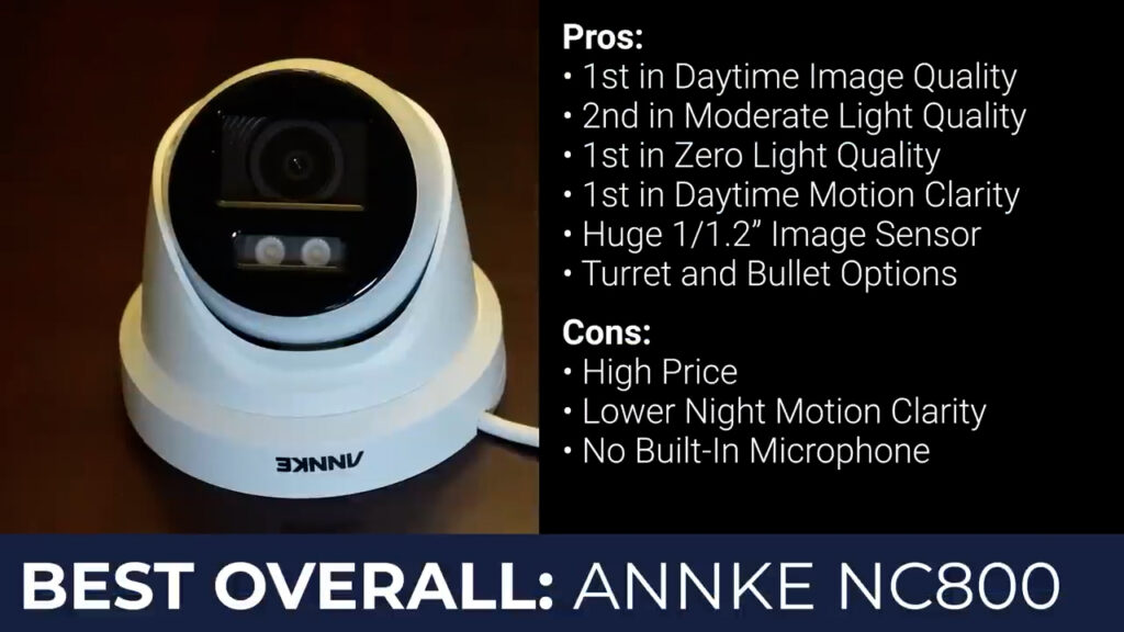 As far as overall image quality, none of these cameras were able to unseat the Annke NC800 as the best color night vision camera on the market, and the 1 / 1.2” 8 megapixel sensor gives it crisp clear video both during the day and in ultra-low light situations, and it managed to outcompete the similar sensor sized Dahua Color4K camera despite the Dahua having a narrower field of view. The Annke’s only real downside is its cost, which is around $350.