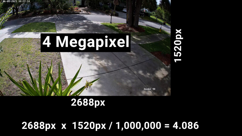 As you probably know, a camera’s resolution is based on the number of actual pixels in the sensor. If you multiply the horizontal resolution by the vertical and divide that by a million, that will tell you the number of megapixels in the image. Most of the cameras in this video are either 2688×1520 which is 4 megapixels, or 3840×2160 which is 8 megapixel, and commonly called 4K.