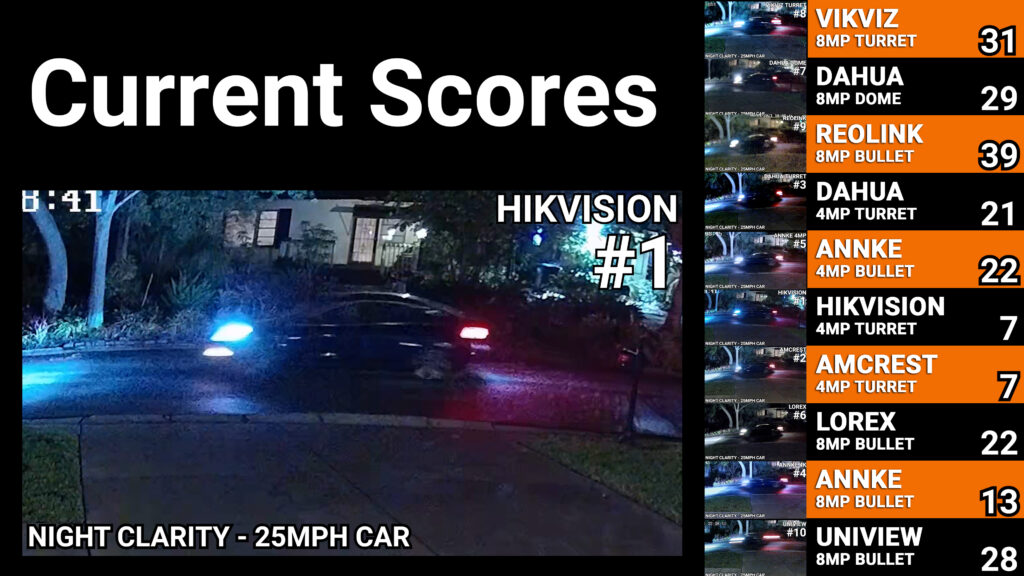 With 37 total points the 4 megapixel Hikvision ColorVu from EmpireTech sneaked out the win from the the Annke 4K camera that finished with 39 total points. Unfortunately for the Annke the Hikvision ColorVu managed to do it for about half the price. For pure night time performance the Hikvision colorvu is the obvious choice, but if you need fine detail during the day the Annke NC800 might be better for you. The Annke also has person and vehicle detection to use with intrusion detection, line crossing and region modes, while the Hikvision from EmpireTech uses object based intrusion detection, line crossing, and object removal events. The 4 megapixel hikvision also has face detection, which seems weird that has face detection but not person detection, but I guess that’s a different system.