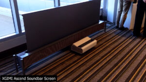 XGIMI on the other hand does plan to release the Ascend, an ultra short throw screen and soundbar combination that they produced in collaboration with Harmon Kardon which pairs a 0.6 gain lenticular ALR screen with eight separate speakers including upward firing tweeters on the top of the unit. The Ascend is specifically designed to be paired with XGIMI’s AURA2 ultra short throw, and XGIMI is also considering releasing a black version of the AURA2 in order to fit in better with the Ascend lineup.