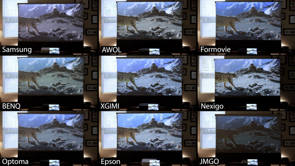 Notable performers here were the Formovie theater and AWOL LTV-3500 that have so many options that I had to google some of them to figure out what they did, so if you’re looking to do some serious calibration those are the projectors for you.