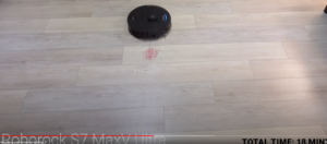 After a quick clean up the Roborock S7 MaxV with the vibrarise mop was next. For this 10ft by 10ft area the Roborock took significantly longer, completing its mopping run in 18 minutes compared to the ecovacs 11 minutes, and while it was able to easily clean up the coffee spill, there was unfortunately still a very noticeable jelly stain and even more unfortunately the stickiness of the jelly got spread around to the entire area, so before starting the next run I did a thorough manual mopping of the floor.