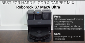First, if you have a combination of hard flooring and medium to low pile carpet, the Roborock S7 MaxV ultra is the best mopping and vacuuming combination robot ever made. You can create highly customized cleaning schedules that will keep your house vacuumed and mopped with very little maintenance on your part, basically once a month just empty the dirty water tank, fill the clean water tank, and check the brush for tangles.