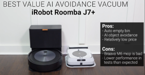 Moving on, we still need to talk about Roomba. If you don’t care about mopping and have primarily carpet then the Roomba J7+ is definitely the cheapest and best way to get computer vision object avoidance, high performance vacuuming, and an auto empty base. Unfortunately, the accompanying mopping solution the Braava M6 is mostly terrible, and you shouldn’t buy it. J7 good, M6 bad.