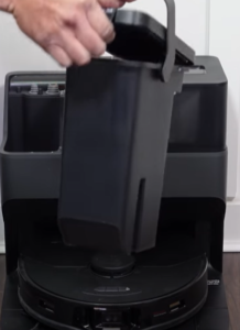 I’ve also got two other small nitpicks and design notes on the OMNI base while I’m at it. First comparing the water tanks on the X1 OMNI to the Roborock Ultra, roborock put the handles on the side of the tanks while Ecovacs put them on the top. The problem with that is that water is pretty heavy and the entire weight of the tank is being supported by this one small plastic tab. If that tab were to wear out or break then you could potentially spill 3 and a half liters of dirty water onto your floor.