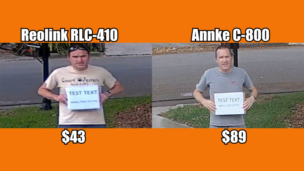 The last question is whether the increased file size and price is justified by the increased image quality associated with 4k cameras? Comparing footage from my previous video to this one tells a pretty convincing story. The reolink RLC-410 produced this image from 25 feet and when compared to same image taken with the 4k Annke, not only isthe field of view significantly wider, but in general the image is crisper and the text is more legible… so it really comes down to a question of price. The RLC-410 costs around $43 these days compared to the $89 Annke, and even though the Annke produces a much higher quality image, I can’t tell you whether it’s worth over twice the price, because that’s a personal decision based on your own budget.