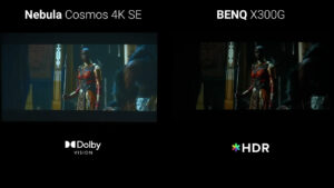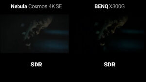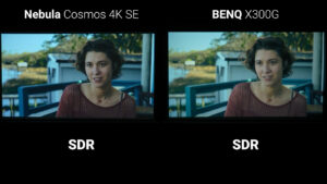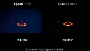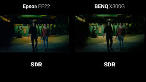 Round 1 had the Epson EF22 on the left and the BENQ X300G on the right. Starting with bright SDR content, neither projector had as much brightness as I’d prefer, but I thought the Epson was noticeably worse with a pretty flat and uninteresting image that was shifted towards the red spectrum, while the BENQ was not only more color accurate, but also a bit more vibrant due to the increase contrast. Also, in dark SDR content, the BENQ’s ultra-low black floor looked excellent and in comparison, the Epson looked completely gray and washed out.