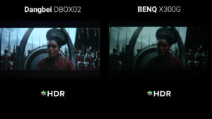 And that means Round 3 was the Dangbei DBOX02 on the left and the BENQ X300G on the right. You can see what a huge difference brightness makes when looking at bright SDR content and the Dangbei looked extremely vibrant, crisp and life like. While the BENQ’s contrast and black floor carried it through the last two rounds, all the Dangbei had to do was not screw up too badly on darker scene. While I wouldn’t call its low APL performance great by any means, it also wasn’t terrible, and although dark scenes were a little gray and washed out, at least most of the shadow detail was preserved. HDR moderately lit scenes were much better on the Dangbei and highlights finally felt like highlights, while in dark scenes a lower gamma setting helped to make details visible despite a high black floor and relatively poor native contrast. So, ultimately this was a close round, but I chose the much better medium and high APL performance of the Dangbei over the low black floor of the BENQ.