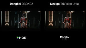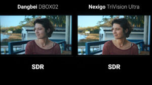 In Round 5 the Dangbei DBOX02 was on the left and the Nexigo TriVision Ultra was on the right. Unlike the last round, this one wasn’t particularly close. In bright scenes, the Nexigo had better tone mapping, higher brightness, and better color accuracy. In dark scenes the TriVision Ultra’s black floor was not only lower, but also a more neutral black compared to the Dangbei which had some blue tint, and the same was true in Dolby vision where the Nexigo’s contrast and more neutral looking black floor gave it a huge advantage over the Dangbei. The auto exposure test just confirmed everything that we had already seen, and this was an easy win for the Nexigo.
