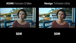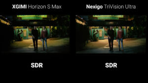 So then Round 6 was the XGIMI Horizon S Max on the left and the Nexigo TriVision Ultra on the right. In SDR content, in bright and moderately lit scenes, the color accuracy and tone mapping of the XGIMI was absolutely spot on, and it wasn’t until it got to the absolute darkest scenes that the Nexigo started to have the edge. However, in HDR and Dolby Vision, the Nexigo was ever so slightly better in both light and dark scenes because again it not only had a slightly lower and more neutral colored black floor but also brighter highlights. The auto exposure test was also much closer than any of the previous rounds, and ultimately the Nexigo was just barely better, and I chose it to win this round, but I do think the Horizon S Max is easily the best projector that XGIMI has ever made.