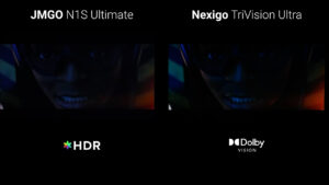 Round 7 then put the JMGO N1S Ultimate on the left and the Nexigo TriVision Ultra on the right. This was another close round. Like the XGIMI in the previous round, the JMGO had the obvious edge in bright and moderately lit SDR scenes and the Nexigo’s only SDR advantage was in dark scenes where it not only had brighter highlights, but also more shadow detail and a more neutral black tone while the JMGO’s blacks were shifted towards blue. But just like the previous round, the Nexigo’s HDR performance was significantly better in basically all conditions and a few scenes were absolutely no contest with the biggest issue on the JMGO being crushed shadow detail, even with the gamma set to bright. Again, the blacks on the JMGO were definitely shifted blue compared to the Nexigo, which you can clearly see in the auto exposure test, meaning the Nexigo was going to move on again.
