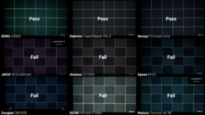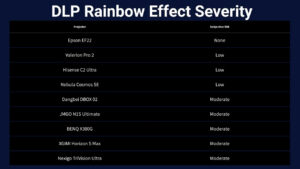 Speaking of individual sensitivities, I also tested for the DLP rainbow effect using my standard test pattern with MEMC off and found that the Valerion Pro 2, Hisense C2 Ultra, and Nebula Cosmos SE all had low RBE, and all the other DLP projectors had a normal, moderate amount of RBE, while the Epson EF22 had none since it uses 3LCD projection and not DLP.