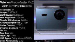 The Valerion Vision Master Pro 2 has basically no weaknesses. I’ve reviewed hundreds of projectors, and I can usually find something wrong with them, but other than some maybe overzealous contrast claims that are only achievable with full black and white patterns, the Valerion is absolutely exceptional, and at $2099 we’ve never seen a projector with this kind of performance at that price point.