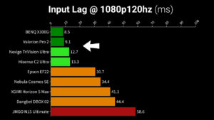 So, for gaming, the BENQ X300G is the absolute best, followed very closely by the Valerion Pro 2, but keep in mind that you need to enable instant response mode, high refresh rate mode, and DLP turbo mode on the Valerion to get those input lag numbers, and if you use keystone, it doubles the lag at each refresh rate.