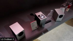 Mini ultra short throw projectors were all the rage at CES 2025, and LG also debuted the CineBeam S, which is a portable, but not battery powered 4K Triple Laser ultra short throw projector with 500 ANSI lumens and automatic screen correction. Unfortunately, no real info about pricing or release was available and to be honest the picture was not impressive, but the environment where it was being displayed wasn’t doing it any favors.