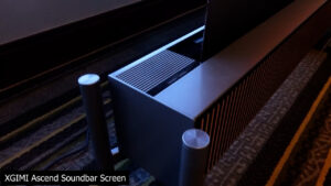 XGIMI on the other hand does plan to release the Ascend, an ultra short throw screen and soundbar combination that they produced in collaboration with Harmon Kardon which pairs a 0.6 gain lenticular ALR screen with eight separate speakers including upward firing tweeters on the top of the unit. The Ascend is specifically designed to be paired with XGIMI’s AURA2 ultra short throw, and XGIMI is also considering releasing a black version of the AURA2 in order to fit in better with the Ascend lineup.