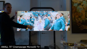 Due to their overall size, the AWALL large format microLED screens will come in panels to be assembled on site, but they’re also offering fully assembled versions that they are calling their microLED TV series, which are available in 75” cinemascope aspect ratio for $7990, and an 81” in the more common 16:9 aspect ratio for $9,990 and all the versions offer 1000 nit full field peak brightness, and 10,000:1 contrast.