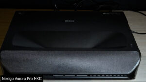 Nexigo was also showing off a prototype 4K standard throw projector called the TriVision Ultra MKII, with an ALPD 5.0 hybrid light source, 4000 lumens, 2500:1 native contrast, and 25,000:1 dynamic contrast. But the most interesting thing was that it also featured the newest Texas Instruments 8445 controller which enables sub 1 millisecond input lag for gaming and VRR for the first time ever in a DLP projector. Unfortunately, the TriVision MKII was just a prototype to show off new tech and doesn’t have any firm pricing or release dates available.