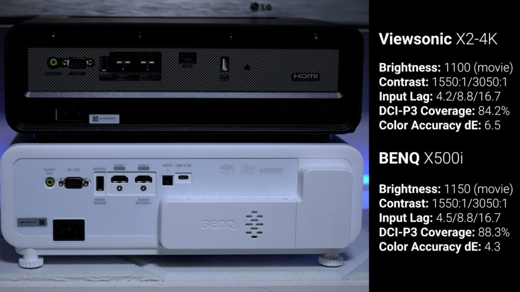 No matter what your budget is, the BENQ X500i seems to be the best gaming projector on the market with the ViewSonic X2-4K close behind, and looking at the projectors themselves and their stats I actually wouldn’t be surprised if they had almost the exact same internal parts. That said, the BENQ seems quite a bit more polished from a software and tuning perspective and it also includes BENQ’s QS02 streaming stick which has full Android TV 10 with Netflix support, while ViewSonic’s smart OS platform is basically worthless. So, if you can get past the XPR motor noise at 4K 60Hz the X500i is not just the best gaming projector, but probably the best all-around projector I’ve ever tested.