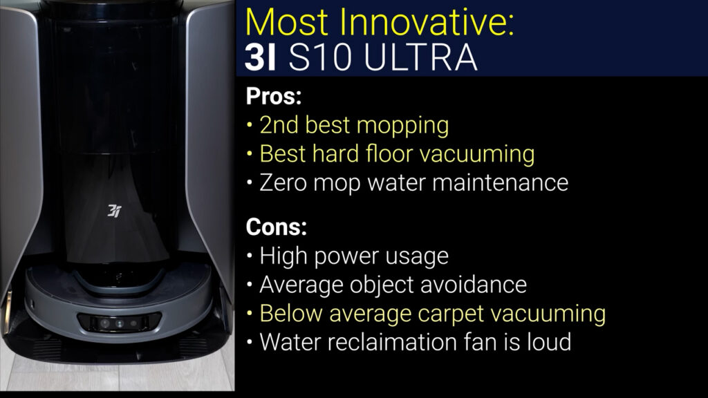 Lots of people ask me which vacuum I’ll end up using, and despite its shortcomings in power usage, object avoidance, and carpet vacuuming I’m going to continue to use the 3i S10 Ultra because the mopping and hard floor performance is very good and the water reclamation feature is just so convenient as long as you have enough humidity in your house and you can run the water system while you’re sleeping or away, because it is louder than the rest of the bases.