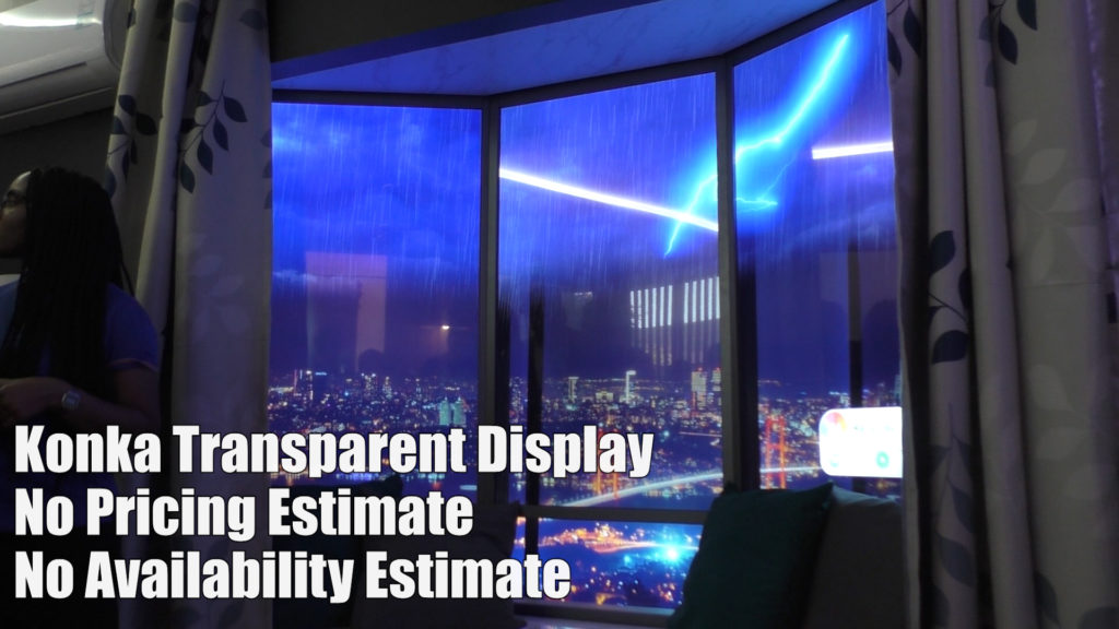 Transparent glass displays from Samsung, LG, Panasonic, Konka, Sharp and Skyworth were being advertised with a ton of different uses, but one of the most interesting to me was in an exterior picture window. Konka chose to use their display to make a nice day seem rainy, but I might have gone the other way with it. No information has been given about the pricing of these large transparent displays, but expect them to start showing up everywhere in the not too distant future.