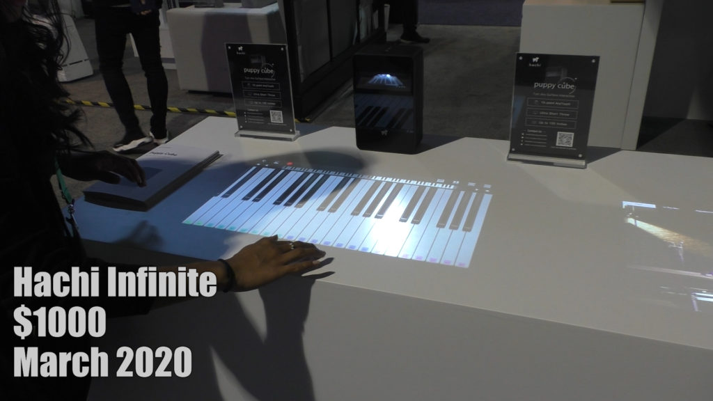 Hachi was at CES with their brand new projected multitouch display intended to be used on a surface like a countertop. These displays use android 9 and offer a remarkably clear and accurate touch experience for a camera tracked device. The newest hachi device, the Hachi infinite retails for $1000, responds to both touch and voice commands, and can project a screen up to 100 inches diagonal, although I wouldn’t recommend it since the 720p maximum resolution will look pretty pixelated at that size.