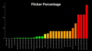 Non-dimmable bulbs usually also have lower flicker percentage than dimmable bulbs, and all of the Philips High Efficiency bulbs had no detectable flicker, with a 0.00 total flicker index and undetectable flicker frequency, but unfortunately the 200W non-dimmable Feit electric bulb was an exception to the rule.