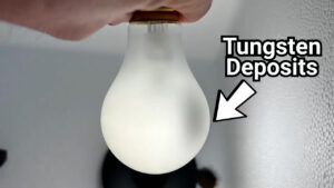 On the package for my incandescent bulbs, it lists a lifespan of up to 1000 hours because as the filament heats up, some of that tungsten metal actually sublimates, and after 1000 hours of usage the filament is just used up. An incandescent lightbulb could last far less than 1000 hours if there were a defect in the glass or the filament but for the most part we can expect around 1000 hours of usage, and probably not more than that.