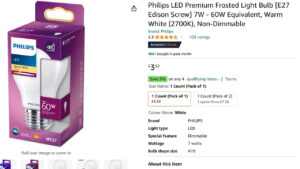 - Philips High Efficiency: goto.walmart.com/c/1397469/565706/9383?veh=aff&sourceid=imp_000011112222333344&u=https%3A%2F%2Fwww.walmart.com%2Fip%2FPhilips-Ultra-Efficient-LED-60-Watt-A19-Light-Bulb-Daylight-Non-Dimmable-E26-Base-2-Pack%2F1507571536