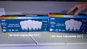 Also from Feit Electric, at Costco I bought both the 60W and 100W adjustable color temperature bulbs, that also have a switch on the base to select one of their five preset color temperatures ranging from 2700K to 6500K.