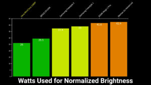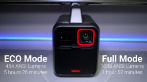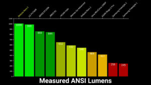 Because these are portable projectors the next step would normally be to compare their battery life, but that’s a bit tricky since some have built-in batteries, some are powered by USB-C, and some are not meant to be powered by batteries at all.  On top of that the battery saving eco modes on these projectors range from around 100 lumens to over 400 lumens, so to try to normalize the numbers a bit, I used the projector settings to target an on battery brightness around 300 lumens.