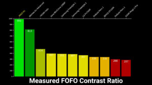 Samsung still advertises the same 550 lumens, and while the Gen 2 did squeeze out 13 more ANSI lumens than the gen 1, it’s still less than half of what Samsung advertises at just 258 ANSI lumens, and has basically the same contrast as the Gen 1 at 387:1.  The fan is also unchanged and has the exact same tone and volume at 38.3 decibels.