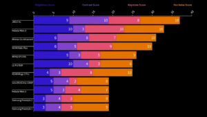 To score the projectors more easily across all categories I converted each score into a value from 1-10 based on their performance in that category, and these are the scores so far.