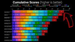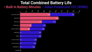 So, for the final rankings I added the minutes of internal battery life to the minutes of battery power that would be available using the 89 Wh Anker PowerCore 737 and came up with these final rankings, and because some of the projectors couldn’t hit the 300 lumen mark, here are the brightness values used in this test.