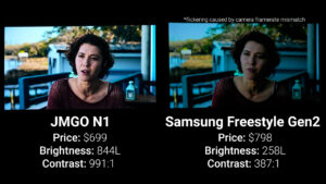 Round 6 was then the JMGO N1 on the left and the Samsung Freestyle Gen 2 on the right, and I ran it through all the content, but there was nothing close about this round and the fact that the Samsung Freestyle Gen 2 costs $100 more than the JMGO N1 is absolutely insane based on their performance, and I would say the image quality of the N1 was at least twice as good as the Freestyle Gen 2.