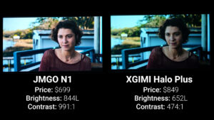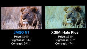 Round 8 then has the JMGO N1 on the left and the XGIMI Halo+ on the right. Last year the Halo+ easily won the side-by-side picture quality testing, but it appears 2023 was a big step forward because the JMGO was an upgrade in just about every aspect including brightness, contrast, color accuracy, sharpness, and tone mapping, with my only complaint being that the noise reduction setting on the JMGO is too high by default resulting in some loss of fine detail, especially noticeable in faces.  Still, there was no question that the JMGO also won this round.