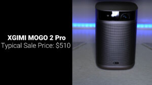Next for a street price around $510 is the XGIMI Mogo 2 Pro, which is the most recent addition to XGIMI’s line of portable projectors. The Mogo 2 Pro is 1080p and is the first projector in this video that doesn’t have a built-in battery, but can be powered by an external battery bank via USB-C.