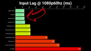 The LG was especially embarrassing since it has a whole submenu called game optimizer, and a mode called low latency, and with all that activated the input lag was still almost 200 ms, which would be unplayable in basically any game.
