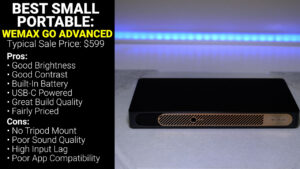 For true portability to put into a backpack or laptop bag the Wemax Go Advanced still can’t be beat and every time I turn it on I’m amazed that they managed to pack such high brightness and great picture quality into such a small projector and the Wemax’s only real downsides are poor speaker quality and high input lag.