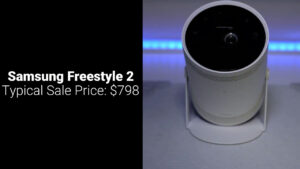 After that for a common street price around $597 is the Samsung Freestyle 1st Generation. The Freestyle has 1080p resolution and also lacks a built-in battery, but you can buy an official Samsung Freestyle battery base for $189 which like the Freestyle itself is alarmingly overpriced for its advertised 115 watt-hours of capacity.