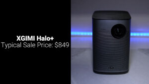 After that, for $849 is the XGIMI Halo+ which was the winner of last year’s video and has been my go-to portable projector since then. The Halo+ is 1080p and has a 59.45 watt-hour battery. The Halo+ runs AndroidTV 10.0 and has excellent automatic focus and keystone with object avoidance. The Halo+ has HDMI, USB, and audio out ports and can use the small built-in kickstand for aiming, or like the Mogo 2 Pro the Halo+ is also compatible with XGIMI’s multi angle stand for simple precision aiming.