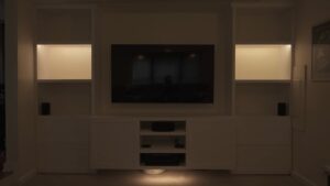 Living Room Theater Build – Hidden Screen, LEDs, Motorized Blinds