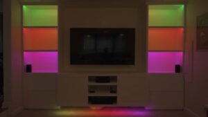 Since these are addressable strips each shelf, and section can be individually controlled, and since we’re using WLED we’ll also be able to set up a screen mirroring system later using the E131 protocol.