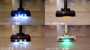 The other area where the SwitchBot shines is the green LEDs on the front of the unit, which are more concentrated and better aimed than the blue LEDS on the front of the Ecovacs and Yeedi, and as a result I found it much easier to find dust and debris on the ground with the SwitchBot handheld than with any of the others. Unfortunately, eufy really missed the mark on this as well with no lights at all on the front of the standard vacuum attachment.