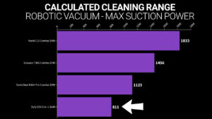 Combining all the vacuuming scores, the eufy, Ecovacs, and Yeedi robotic vacuums were all extremely close in performance with the eufy coming out just barely on top, and the SwitchBot was quite a bit worse finishing last for both carpet and hard floor pickup.