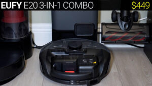 After that for $449 is the eufy E20 which has a unique design that integrates the handheld unit into the robotic vacuum itself. As a result, the auto empty base is very small, but the accessories will need to be stored somewhere else, like the E20’s wall mount.
